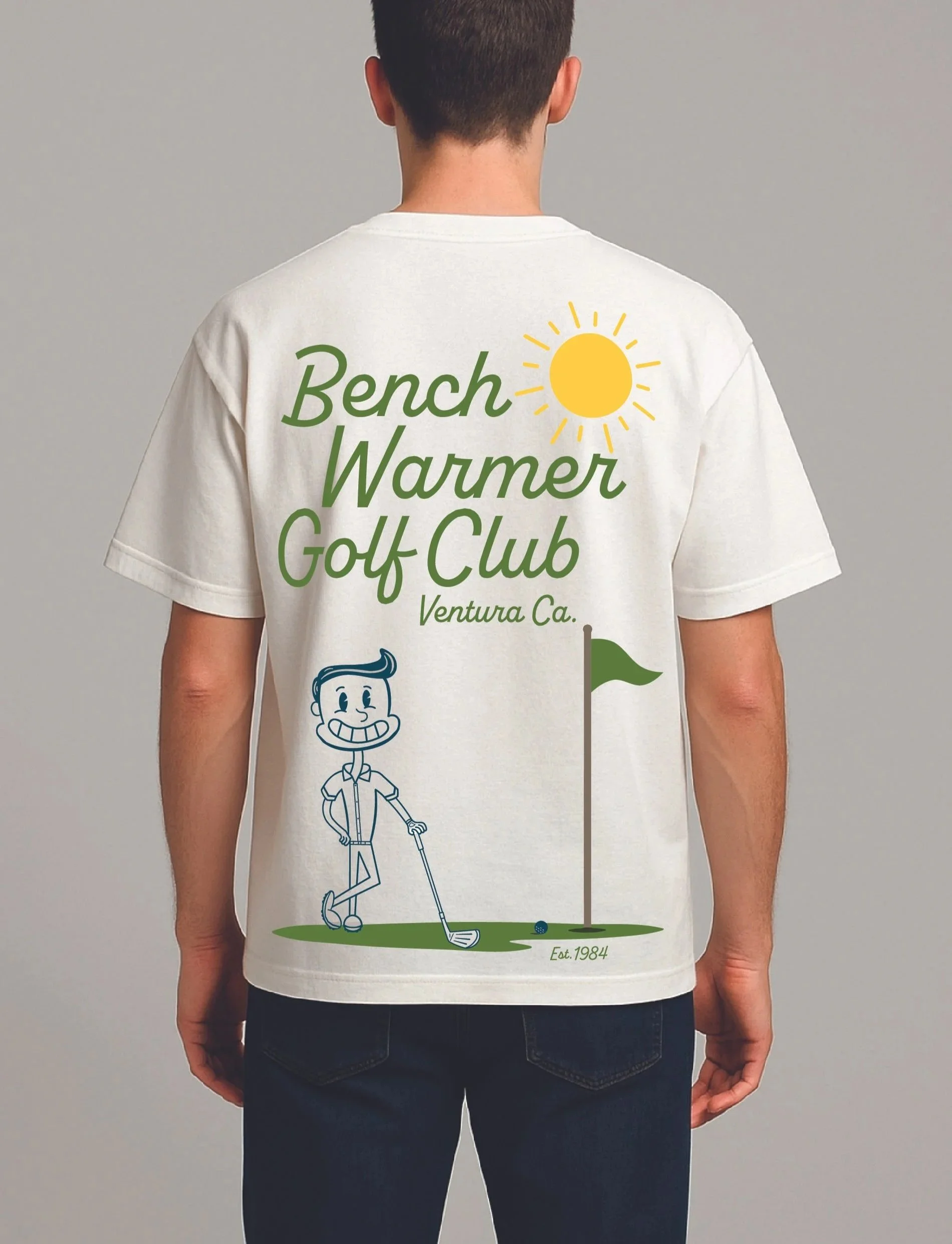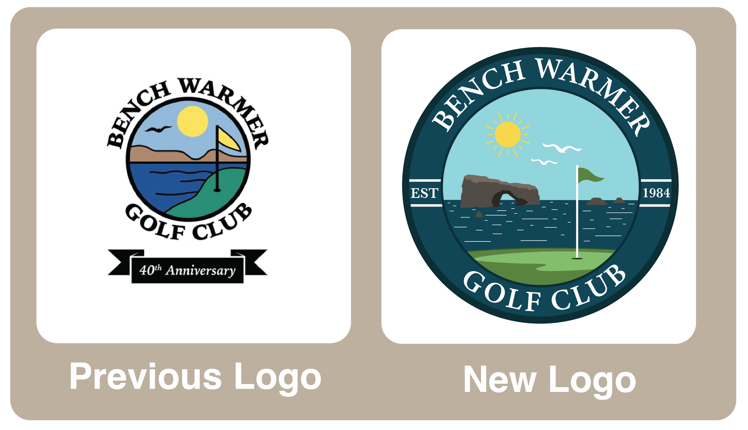 A modern refresh for a 40th-anniversary logo redesign of the Bench Warmer Golf Club, giving the brand a fresh, timeless update while honoring its established legacy. The updated logo was applied across custom apparel including polo shirts used during matches and casual t-shirts for monthly meetings ensuring a cohesive and elevated look. Designed in Adobe Illustrator, with Photoshop for polished mockups. The process included reviewing past logos, developing a refined mark, getting feedback from board members, iterating on its application in apparel design.